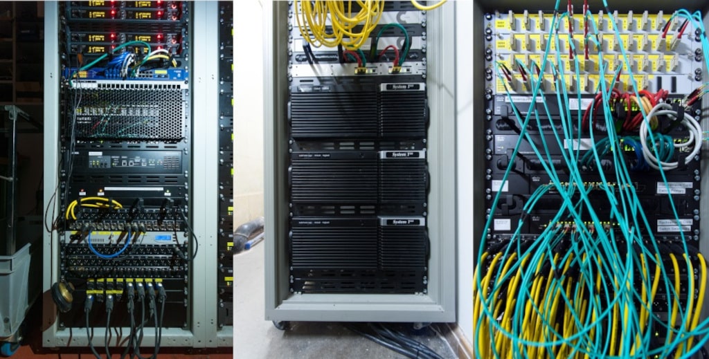 Das Dante-System besteht aus zwei Cisco-Hauptswitches, die über Glasfaser mit neun Racks verbunden sind, in denen sich die sekundären Switches für die Audiogeräte befinden. Jedes Rack verfüge über einen eigenen primären und sekundären Switch, um Audiogeräte mit dem Dante-Netzwerk zu verbinden.