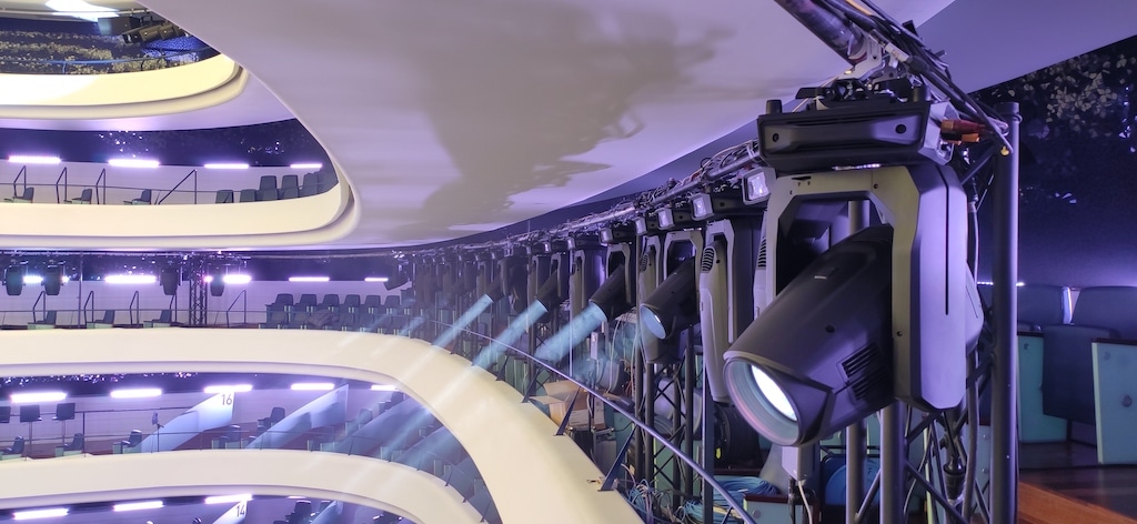 Für Bühnen-Effekte setzte Irastorza auf insgesamt 48 Cameo Opus H5 Beam-Spot-Wash Hybrid Moving Heads, ergänzt durch 16 Cameo Eos W7 LED Wash-Moving Heads. Für die Grundausleuchtung der Award-Show sorgten 24 Cameo Opus X Wash Moving Heads.