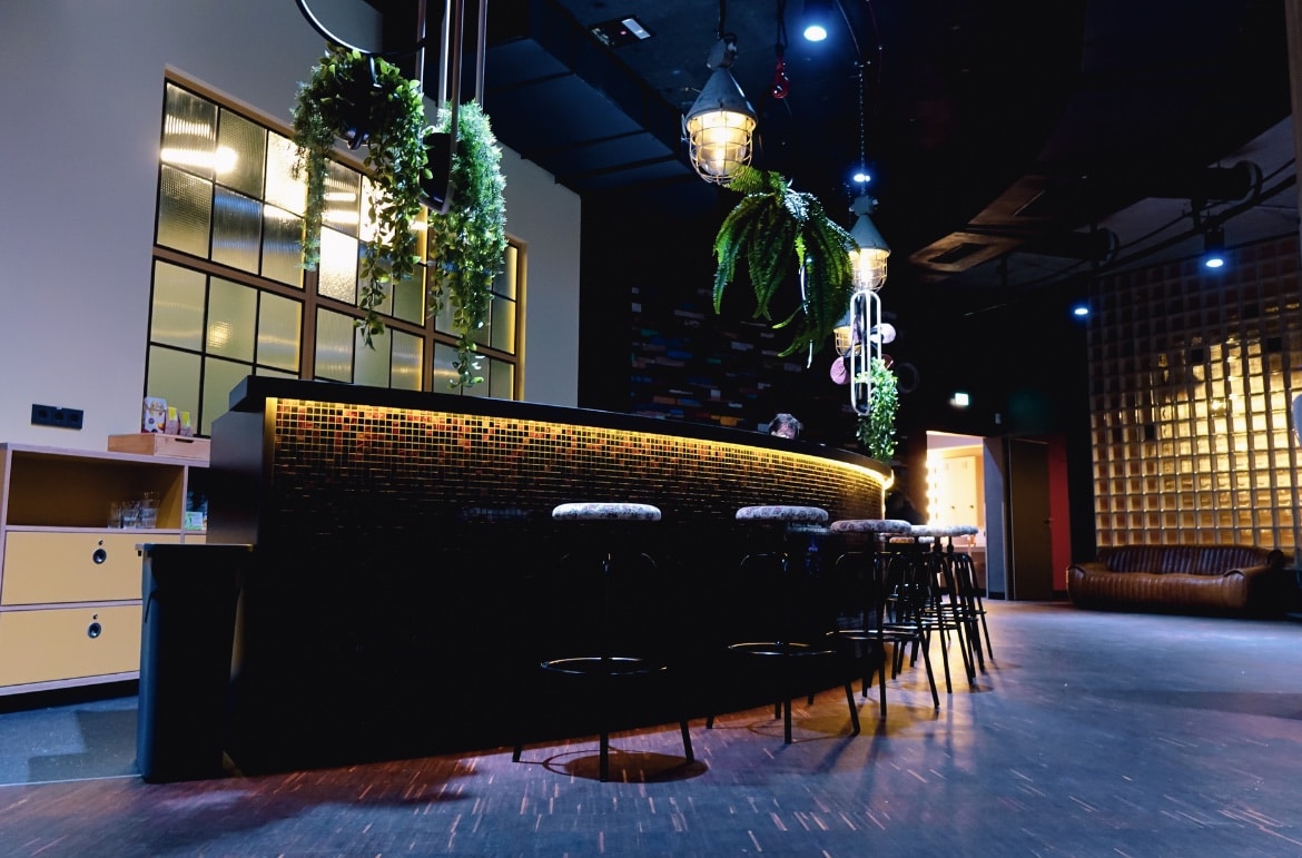 In den umliegenden Lounge- und Gastro-Bereichen sorgen 127 Stück der Cameo H1 FC Houselights für die flexible farbliche Ausleuchtung. Mit ihrem schlanken, reduzierten Design lässt sich die H1 nahtlos in unterschiedlichste Bereiche integrieren und überzeugt zudem mit ihrer flexiblen Ansteuerung.