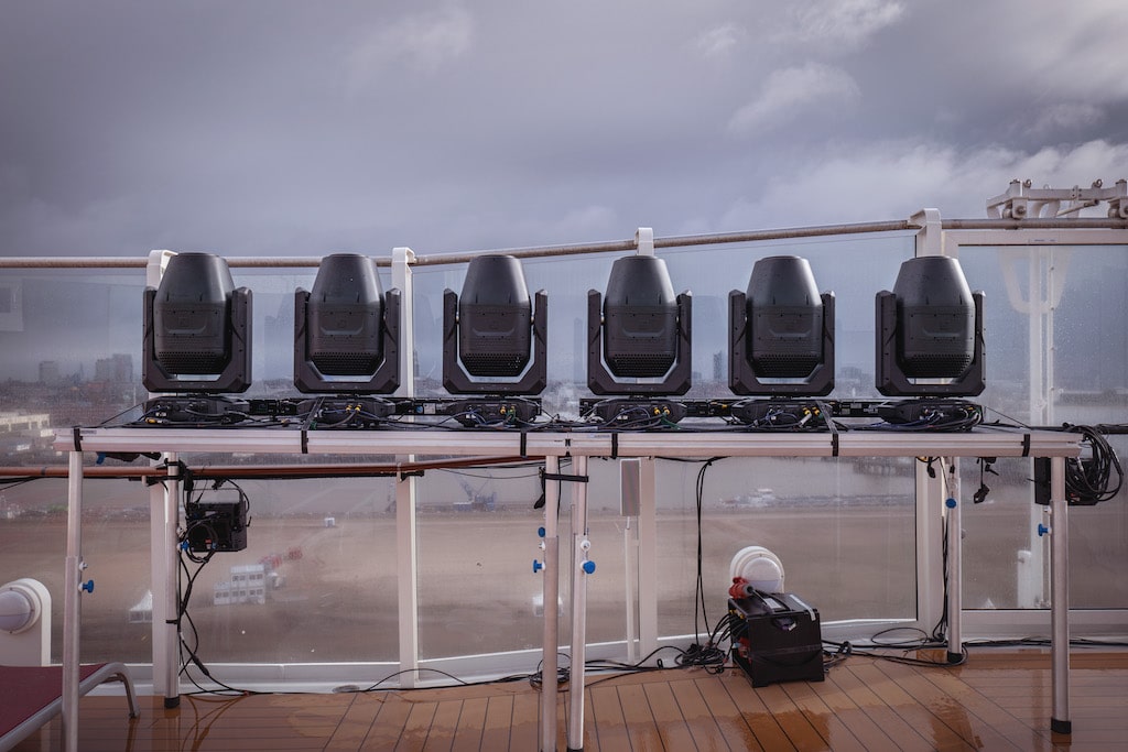 „Wir haben nach einem Scheinwerfer gesucht, mit dem wir innerhalb des Budgets eine hohe Stückzahl erreichen, die den Dimensionen einer derartigen Schiffstaufe gerecht wird [….]“, erläutert Flo Erdmann, der den neuen Beam-Spot-Wash Hybrid-Moving-Head von Cameo als erster Lichtdesigner in einem derart großen Eventrahmen im Einsatz hatte.