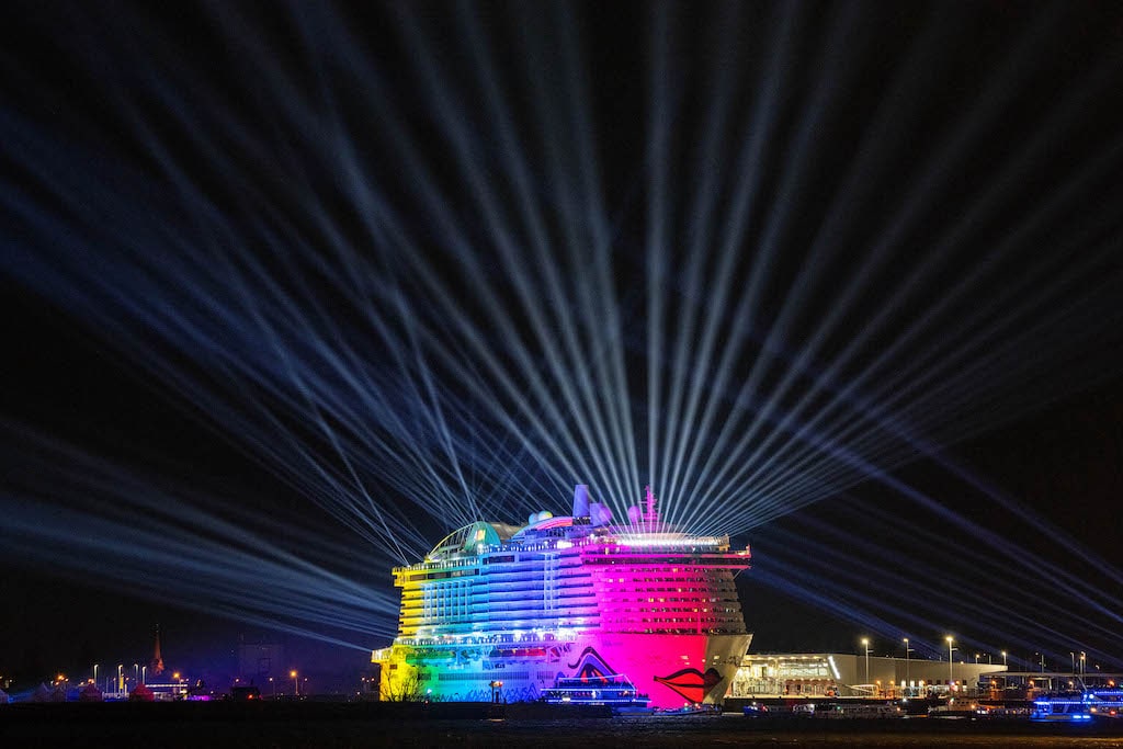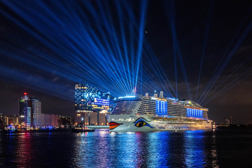 Zur Taufzeremonie der AIDAcosma am 9. April hat Lichtdesigner Flo Erdmann in Zusammenarbeit mit Creative Director Sven Sören Beyer sowie unter Leitung von JP Spaces eine Lichtinszenierung kreiert – dabei setzte er auf 136 Cameo Otos H5.