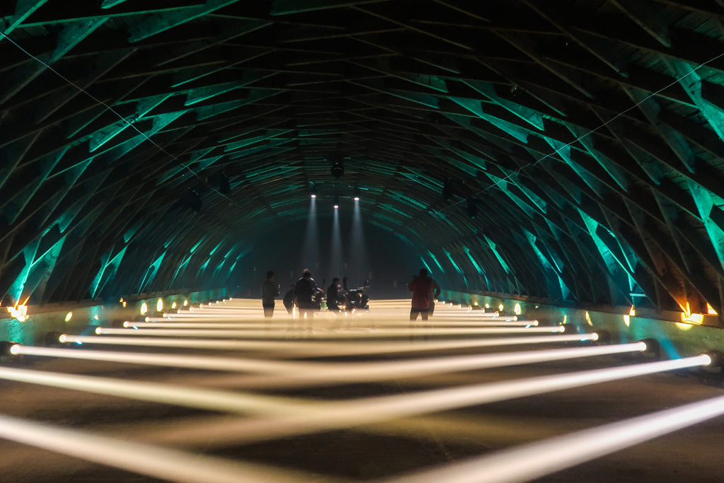 „Der Veranstaltungsort unterscheidet sich von anderen, an denen ich gearbeitet habe“, fährt Birsa fort. „Mein Ziel war es, die Geometrie der Struktur selbst hervorzuheben. Die große Länge und die runde Form des Ortes leiteten meine Ideen, wo die Lichter platziert werden sollten und was zu verschiedenen Zeiten gezeigt werden sollte.“