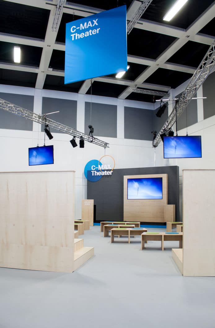 Wie wird eine baugleiche Medientechnik für den einheitlichen Look von über 100 Ausstellern garantiert?