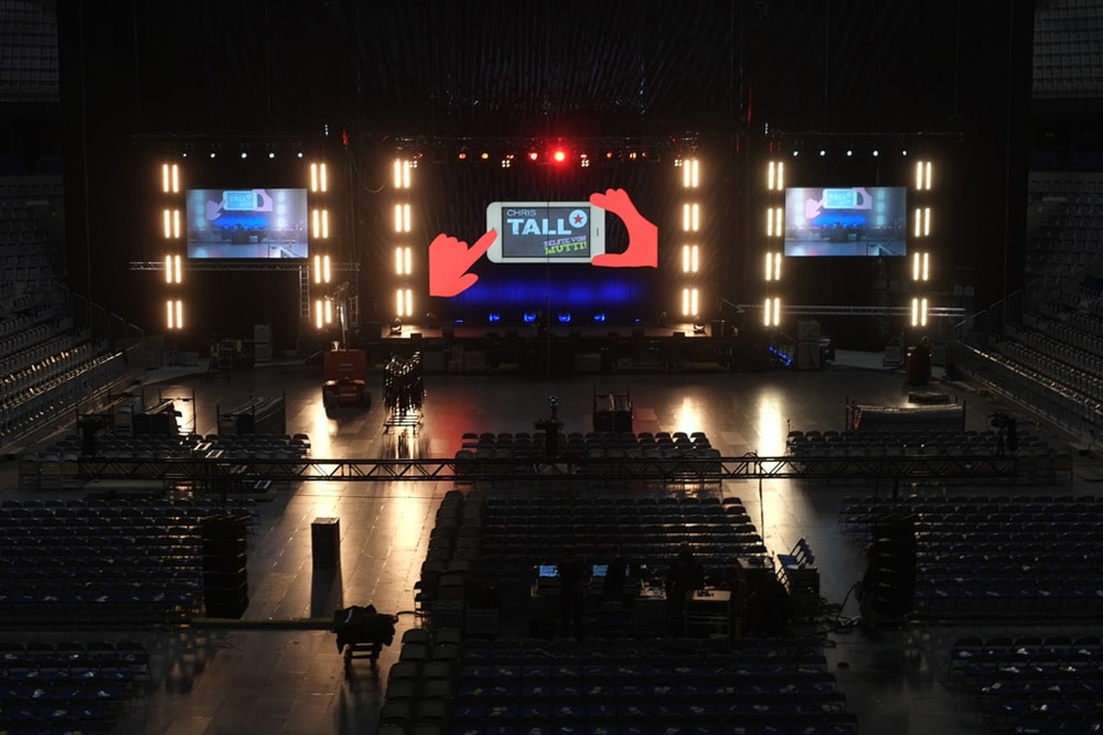 Das herausstechende Bühnenbild ist in einer kreativen Kooperation von Diplom-Bühnenbildner Jörg Schuchardt und contour entstanden und trägt optisch zur Erfolgsgeschichte bei. Verschieden große Locations werden individuell und professionell ausgestattet, sodass die Qualität immer gleichbleibend hoch ist. Für schnelle, reibungslose Abläufe und kurze Bauzeiten sorgt unter anderem der Einsatz von Pre Rig Trusses, die in einem exklusiv für Chris Tall gebrandeten Trailer von Ort zu Ort transportiert werden.
