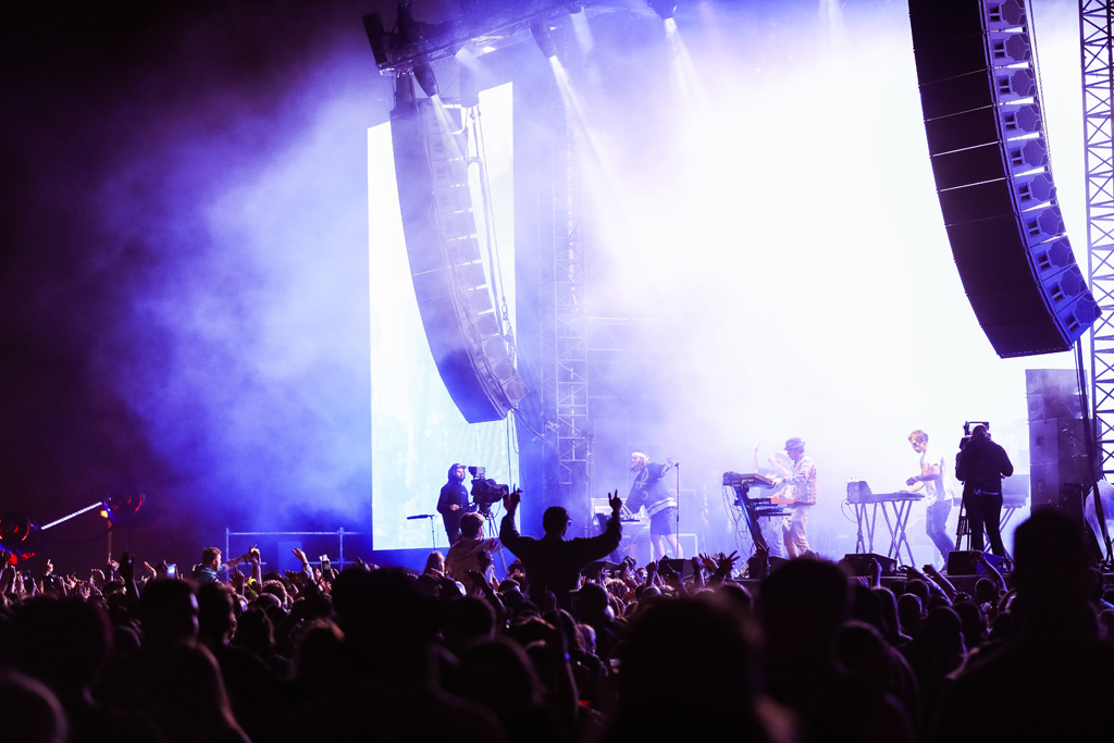 „Das d&b SL System war einfach riesig“, kommentierte Taane. „Die Klarheit und der Frequenzgang bei all den kleinen Mix-Einstellungen, die ich vornahm, war unglaublich. Ich mache viele EQ-Filter-Sweeps auf dem Synth-Bass und auch auf den Reverb-Return-Kanälen für die spannenden Momente in den Songs, und die Energie, die aus dem d&b System kam, war umwerfend. Die Energie des d&b Systems war umwerfend. Es gab so viel Headroom und Fettigkeit, dass ich mehr als zufrieden damit war, den Mix bei 109 db an der Mix-Position zu platzieren, in dem Wissen, dass noch mehr im Tank war für die großen Momente.“