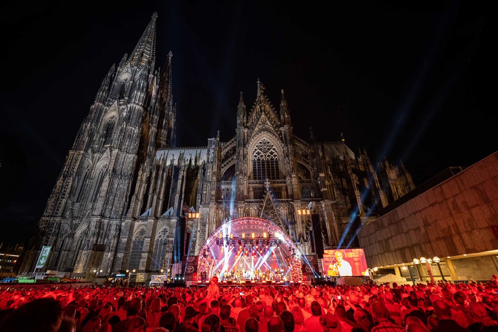 Die Bläck Fööss feierten endlich ihr 50-jähriges Bühnenjubiläum mit drei Open-Air Konzerten auf dem Roncalli Platz vor dem Kölner Dom. Nach Corona-bedingter Verschiebung hat die Band die Veranstaltung kurzerhand in 50+2 umbenannt: An den drei Konzertabenden kamen mehr als 20.000 Fans, um mit der kölschen Musik-Institution zu feiern und mitzusingen. Die Kölner Domplatte platzte aus allen Nähten, so dass auch drumherum viele Fans der Musik lauschten.