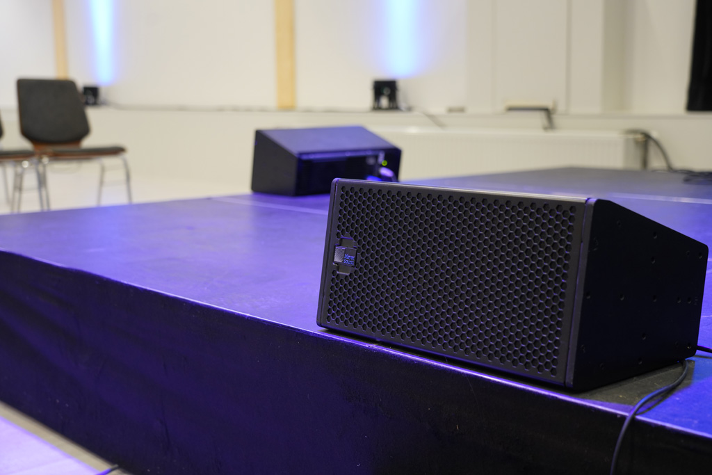 Die sehr weit nach außen gedrehten UPA-1P erreichen die beiden Bestuhlungsblöcke direkt rechts und links neben der Bühne. Eine extreme Breitbeschallung, die aufgrund des Satteldachs und den entsprechenden Raumhöhen aber unvermeidlich war, wie Gerd Müller erläutert. „Und deshalb waren auch die ULTRA-X40 die Lautsprecher, die da rein mussten.“
