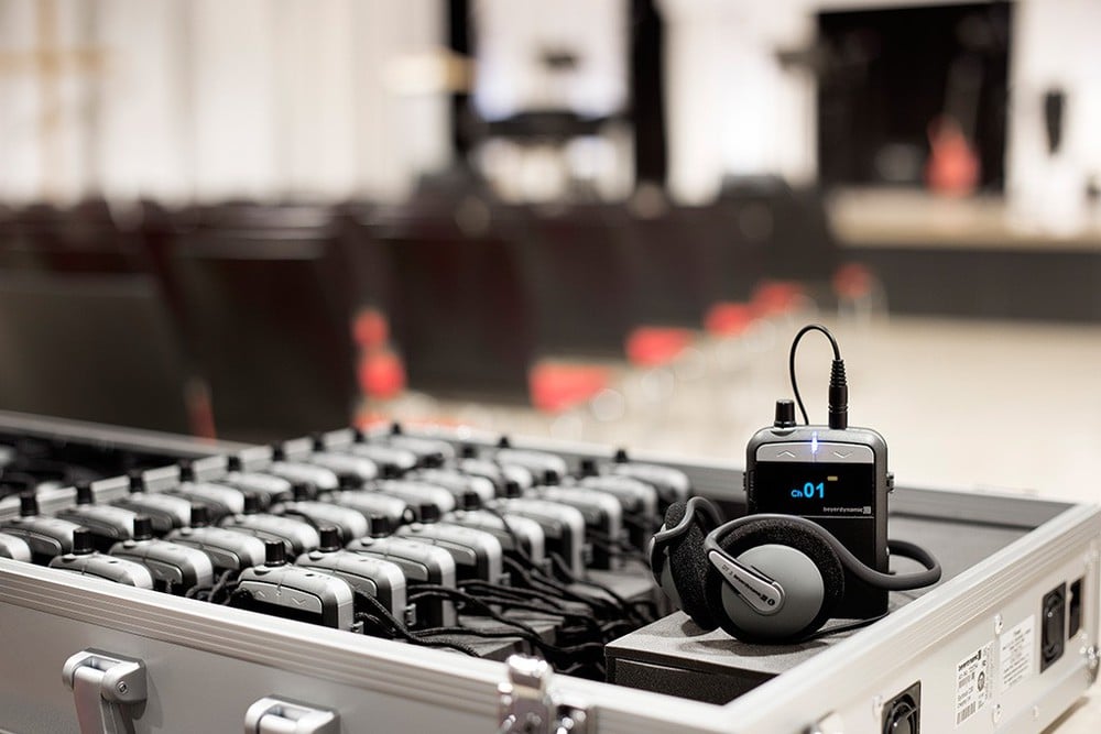 Im praktischen Lade- und Transportkoffer sind die Synexis Empfänger allzeit bereit für die Gäste. (Bild: Beyerdynamic )