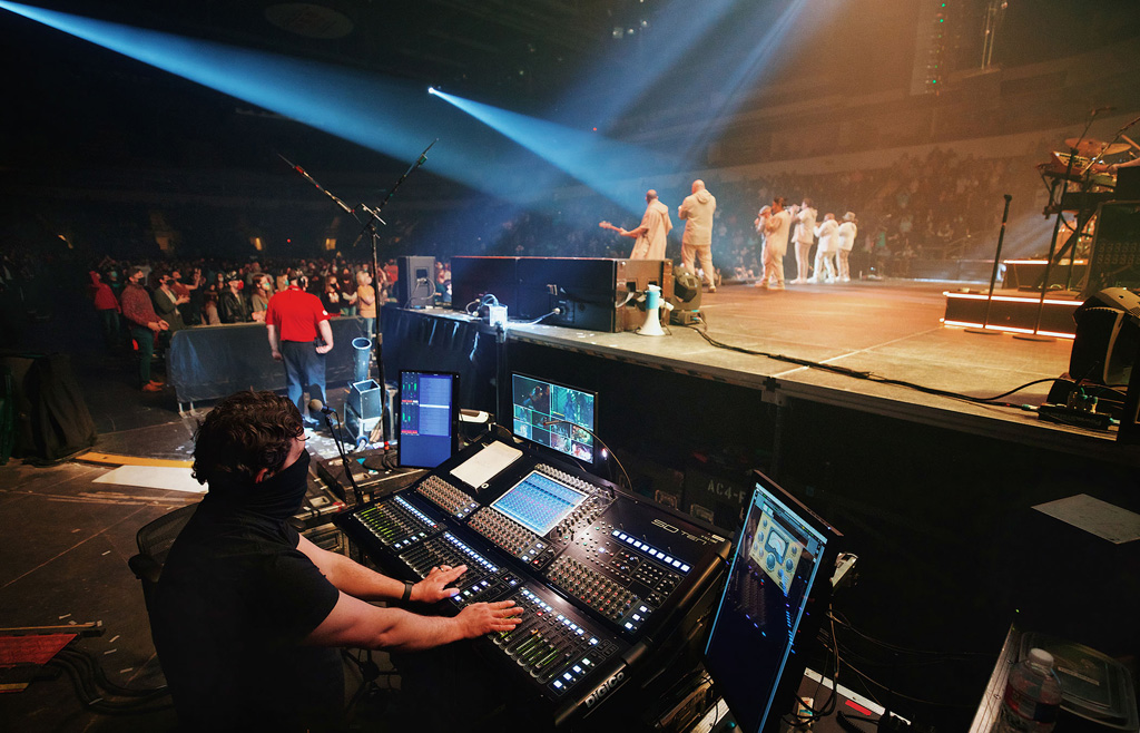 Haapanen arbeitete erstmals 2015 als Systemtechniker bei Blackhawk Audio mit TobyMac und ist seit 2018 für den FOH-Mix des Künstlers zuständig. „Ich habe ziemlich früh mit Digico angefangen, als ich dem Blackhawk-Team beitrat. Meine erste Tournee-Erfahrung mit Toby war auf dem SD10“, erinnert er sich. „Obwohl ich zuvor auf anderen Konsolenmarken gemischt hatte, ist Digico jetzt definitiv mein Favorit, nicht nur wegen der fantastischen Klangqualität, sondern auch wegen der Anpassbarkeit und Konfigurierbarkeit. Ich konnte mich mit den meisten Modellen der SD-Linie anfreunden und habe sie bei vielen verschiedenen Arten von Gigs eingesetzt, von Firmenmeetings und Konferenzen bis hin zu Award-Shows, die allesamt großartig gelaufen sind.“