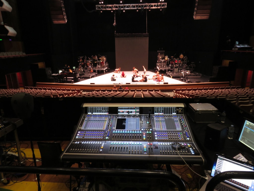 Neun Musiker spielten das Studioalbum (aufgenommen mit 20 Instrumenten) zu einem Click-Track nach, synchronisiert mit Akrobaten. Die Digico SD7 Faderbänke hatte über 130 Eingangskanäle, darunter eine große Auswahl an Perkussionsinstrumenten. „Robin A. Smith ließ mir beim Audio-Design freie Hand, also habe ich versucht, mir vorzustellen, wie Mike an die Sache herangegangen wäre, wenn er sie heute geschrieben hätte, mit dem besten verfügbaren Equipment und der Möglichkeit, seinen Sound zu verfeinern, ohne seine rohe Energie zu verlieren“, erklärt Pink. „Bei den verschiedenen Stilen, die in der Musik vorkommen, brauchte ich die Snapshot-Funktion, um Schritt zu halten, damit ich mich auf das Mischen selbst konzentrieren konnte. Das Schöne am SD7 ist, dass er so schnell und flexibel ist, dass man sehr schnell arbeiten kann und ich dadurch mehr Zeit habe, meinen Mix zu verfeinern.“