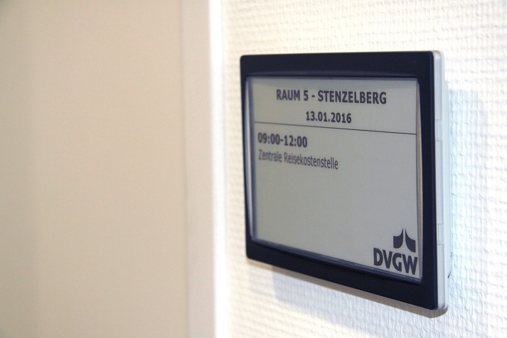 Bei jährlich circa 600 Veranstaltungen – der DVGW vermietet seine Räume auch an externe Veranstalter – und Räumlichkeiten für bis zu 300 Besucher bringen Drahtlosnetzwerk und Wireless ePaper Displays einen Mehrwert für die Veranstalter und Besucher.