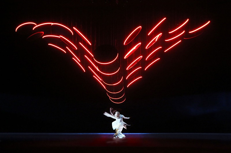 Christopher Bauder entwarf für das 8-minütige Stück ein Storyboard und führte eine Prävisualisierung der kinetischen Elemente durch, welche unter anderem Empfindungen, Gefühle und Atmosphären enthielt, wohingegen Zhang Yimou und sein Team Regie bei der allgemeinen Show führte, die Musik komponierte und Vorschläge für die Positionierung und Choreographie des Tänzers einbrachten.