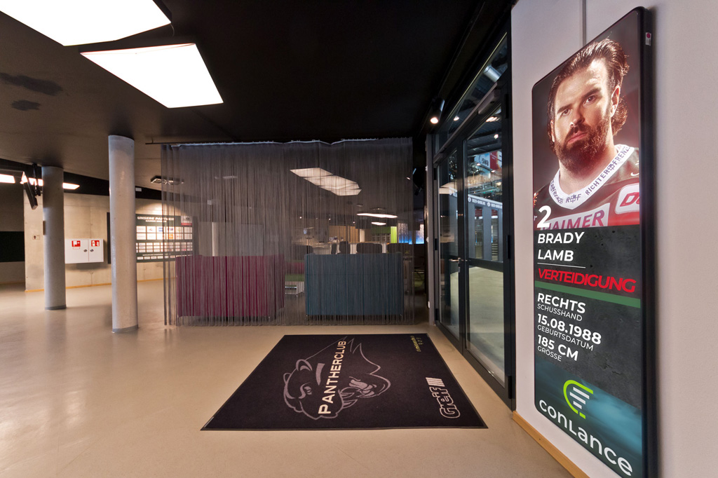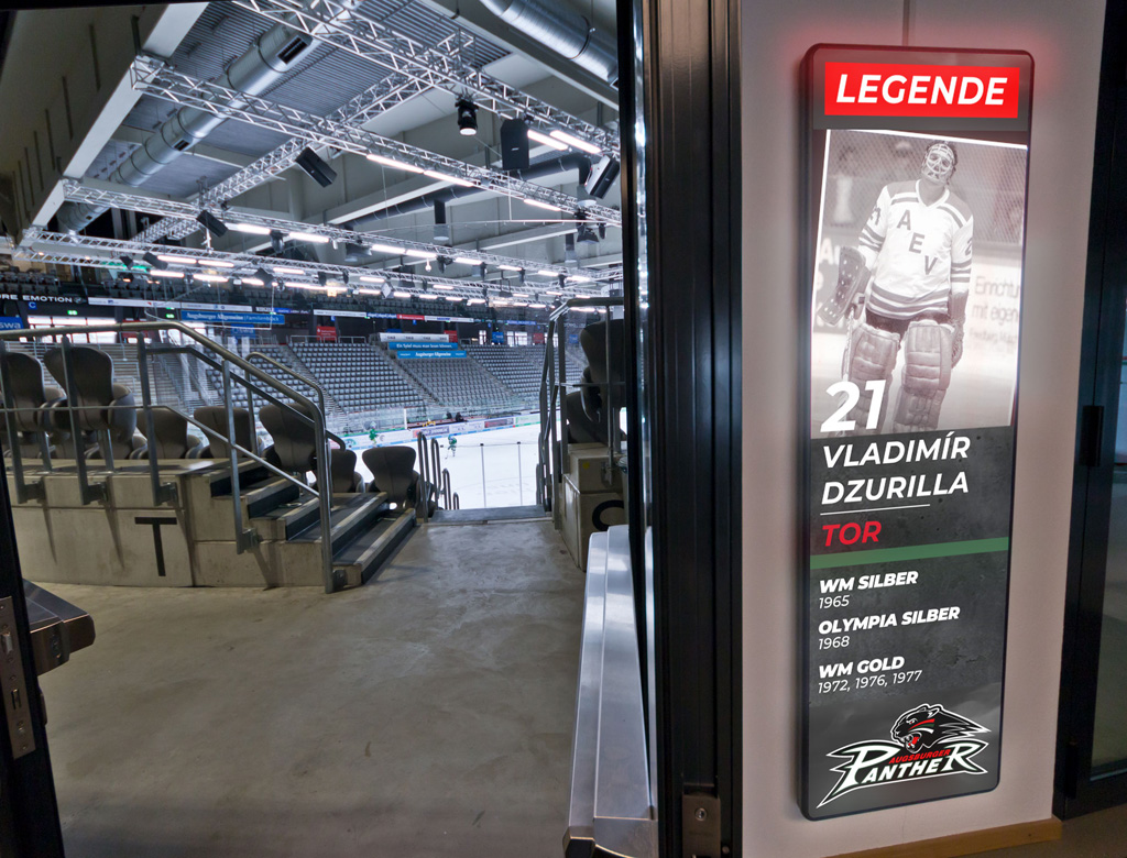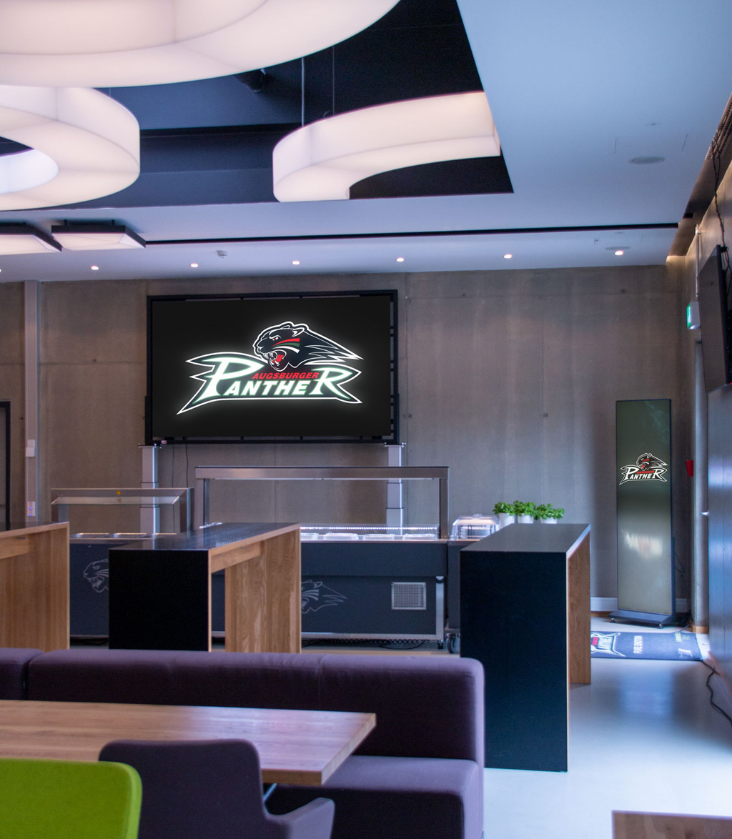 Seit Januar 2020 werden im „Pantherclub“ zwei professionelle LED-Stelen und eine großformatige LED-Wall betrieben. Gezeigt werden Spielerportraits, spieltagsspezifische Inhalte und Highlights aus dem letzten Spiel der Panther. Darüber hinaus werden die Besucher und Gäste im VIP-Bereich des Eishockeyclubs über Gastronomie-Angebote informiert.