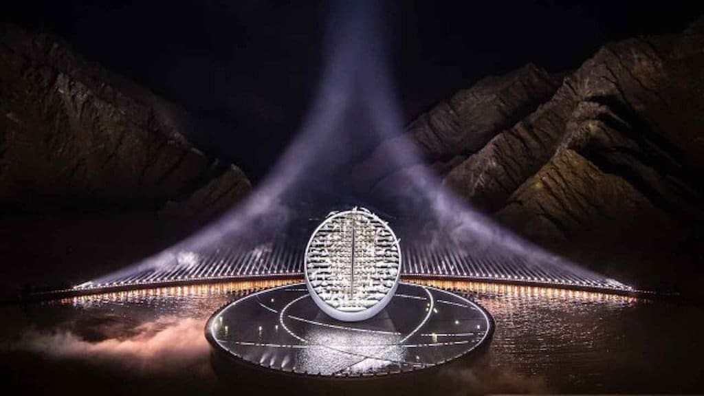 Die Vision, das Ausmaß und das Spektakel der Feierlichkeiten waren schlichtweg überwältigend. Im Mittelpunkt der 36-minütigen Show standen eine riesige rotierende Scheibe und eine Skulptur, die im Wasser des Hatta-Stausees schwammen sowie Musik und Poesie, eine dramatische Lichtshow mit Projektionen, ein von einer Drohne gestartetes Feuerwerk und Wasserspiele – alles in Surround-Sound gehüllt.