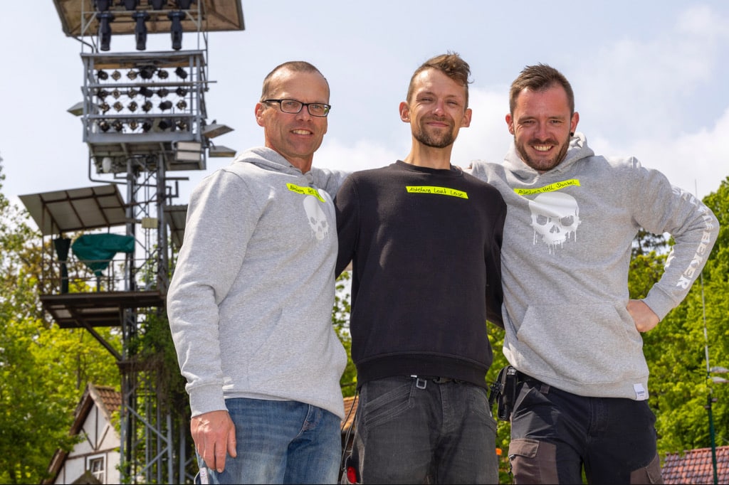 Das Technik-Team v.ln.r.: Thomas Schölzke (Beleuchtungsassistent), Andy Klimmek (Tonassistent) und Eric Wegner (Lichtchef) (Bild: Störtebeker Festspiele GmbH & Co. KG)