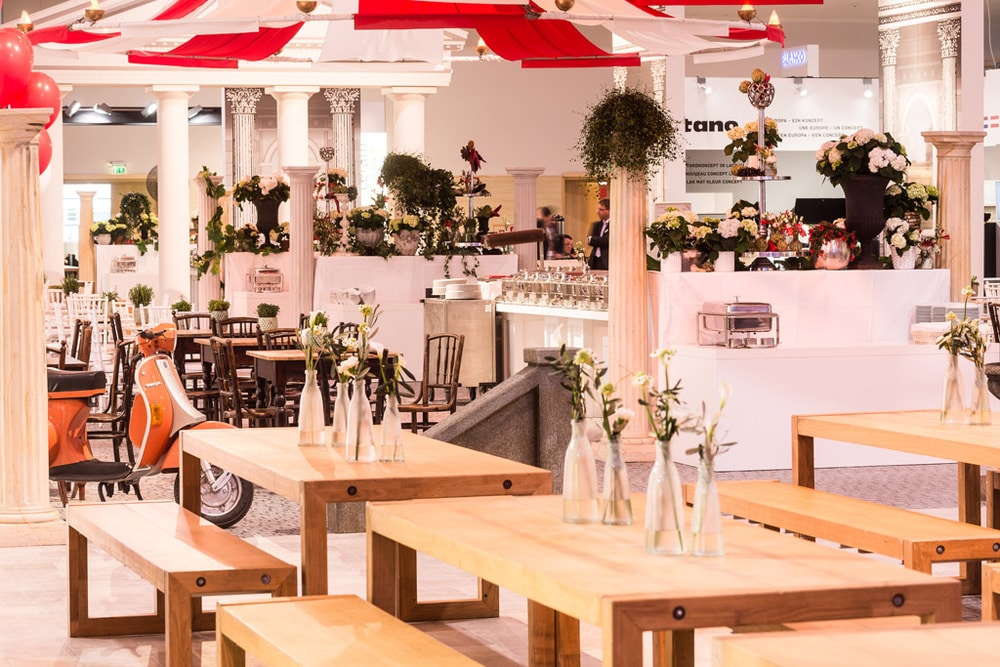 Über 800 Mitarbeiter des Estrel Berlin waren im Einsatz, um die Veranstaltung der MHK auch in diesem Jahr wieder zu einem unvergesslichen Event zu machen. Die Herausforderung lag vor allem in der Vielfältigkeit. Zum einen wurde in der Convention Hall I und den angrenzenden Foyers auf über 6.000 m² eine Messesituation geschaffen, in welcher eine Erlebnis-Küchen-Welt mit funktionstüchtigen Küchen errichtet wurde.