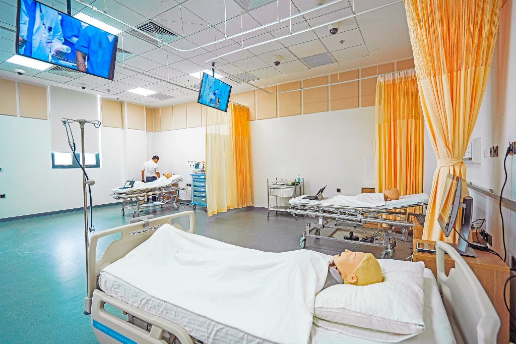 In den Vorlesungs- und Simulationsräumen werden Matrix-Switches der DXP HD 4K PLUS-Serie eingesetzt. Sie unterstützen 4K/60-HDMI mit 4:4:4-Farbabtastung bei Datenraten von bis zu 18Gbit/s und HDR und sollen damit die Anforderungen an hochauflösende Videosignale für die medizinische Bildgebung und die Schaltgeschwindigkeit für Notfalldienste erfüllen. DTP-Sender verlängern die Signale der Quellen innerhalb des Raums. Die Matrix-Switcher sind mit den interaktiven medizinischen Puppen verbunden. Die Inhalte werden an die Bildschirme im Raum übertragen und die Audiosignale an das Soundsystem gesendet.