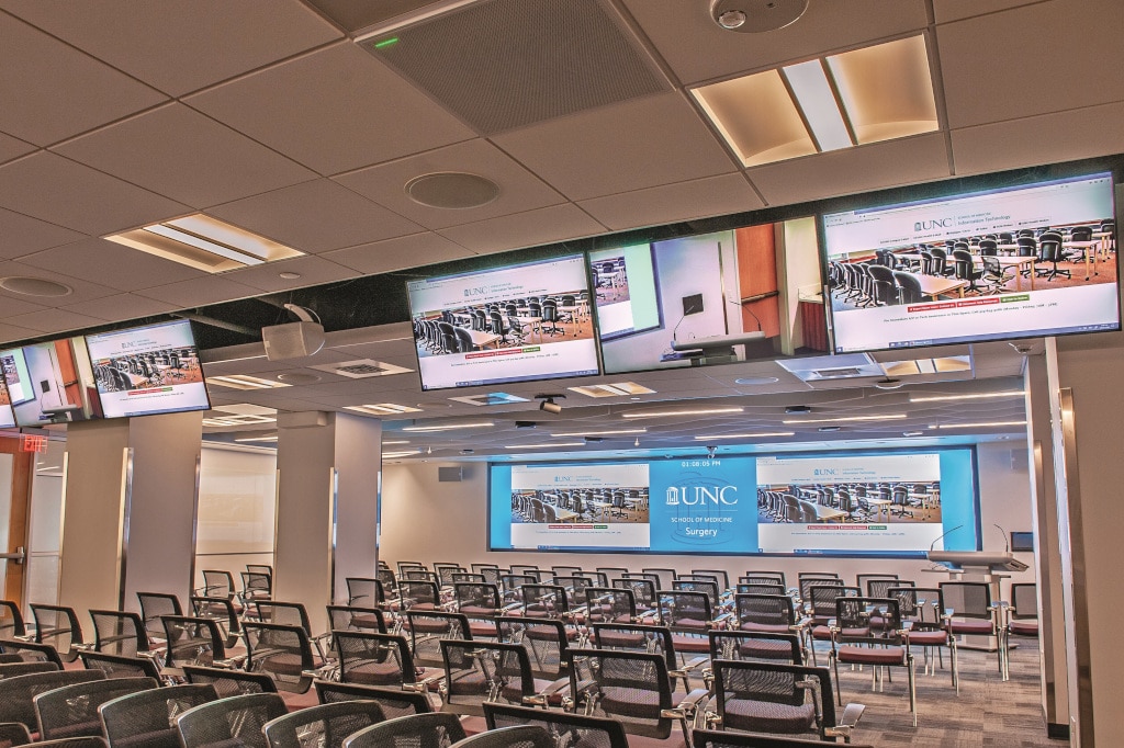 Die Verantwortlichen der medizinischen Fakultät der University of North Carolina, Abteilung für Chirurgie, haben den UNC AV-Ingenieur Christopher Ferrer beauftragt, neue AV-Systeme im Rahmen einer umfassenden Renovierung des vierten Stocks des Burnett Womack Building auf dem Campus in Chapel Hill zu entwickeln und zu installieren. Dabei hat sich Ferrer für AV-Design und Installationsdienste an den Integrator ClarkPowell gewandt und Extron als Anbieter für die AV-Schalt-, Verteilungs- und Steuersysteme ausgewählt.