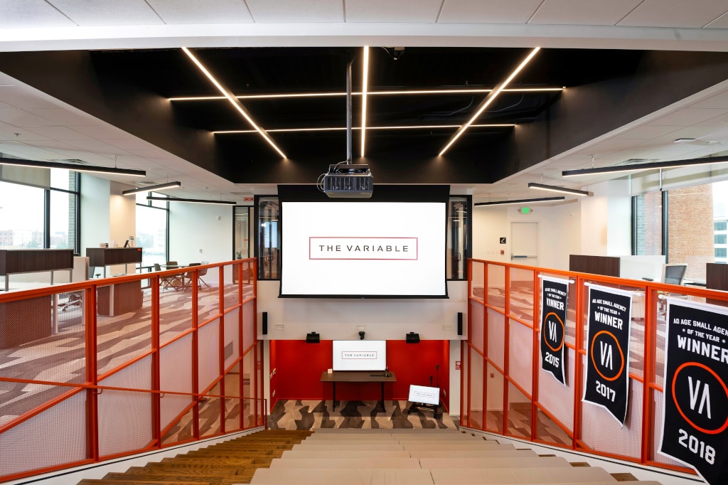 Extron hat sich um die neue AV-Ausrüstung der in Salem, North Carolina, ansässigen Werbefirma The Variable gekümmert. Die Agentur war aus ihren bisherigen Büroräumen herausgewachsen – die Mitarbeiter:innen hatten mehr Platz und neue AV-Technologie benötigt. The Variable hat sich mit dem in Durham ansässigen AV-Integrator KONTEK Systems zusammengeschlossen, mit der Planung des Umzugs in die neuen Räumlichkeiten begonnen und Extron als AV-Ausrüster ausgewählt.