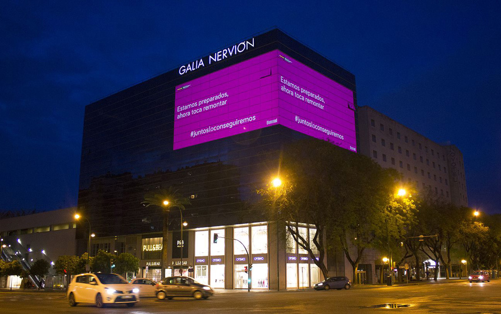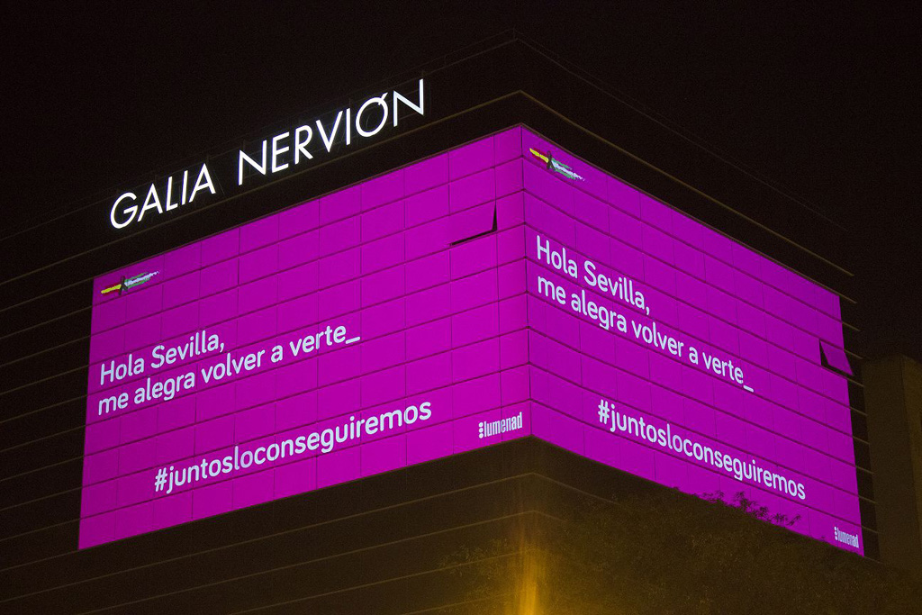 Die spanische Werbeagentur LumenAd setzt, neben der klassischen Werbung, auf Großbildprojektionen um Marken prominent im Stadtzentrum von Sevilla zu bewerben. Für dieses Digital-out-of-Home (DOOH) Projekt setzt die Agentur zwei Christie Crimson Laserprojektoren ein. Nachdem in Sevilla die erste Phase der Lockerungen umgesetzt wurde, werden die Projektoren nun für Dankes- und Solidaritätsbekundungen sowie Hinweise an die Bevölkerung zum Verhalten während bzw. nach der Corona-Pandemie eingesetzt.