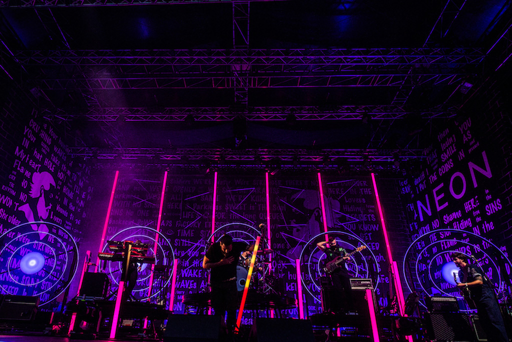 Glatthor – bekannt dafür, gerne vielschichtige, haptische Räume auf der Bühne zu kreieren – entwarf ein variables Set mit vielen Überraschungen. Mit Hilfe von insgesamt 60 Fusion Sticks FS20 von Fusion by GLP griff er das Neon-Thema von Album und Tournee gekonnt auf. Der Großteil der Fusion Sticks wurde von einer Traversen im Bühnenhintergrund in vertikalen Reihen von je sechs Stück untereinander abgehängt. Weitere Sticks auf Bodenstativen verteilte der Designer asymmetrisch auf der Bühne.