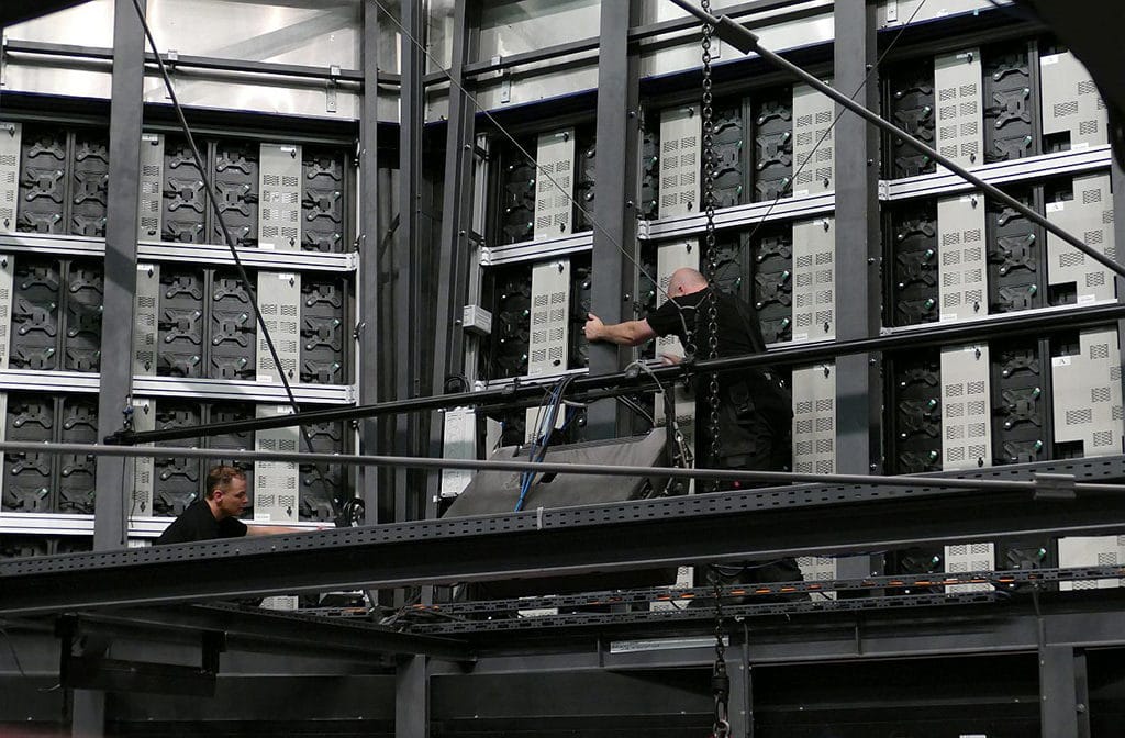 Ein Projektteam, bestehend aus 19 Technikern, Ingenieuren und Auszubildenden von Gahrens + Battermann, leistete im Zeitraum vom 31. Juli bis zum 8. August 2017 den Austausch von acht LED-Video-Displays des Videowürfels in der Multifunktionsarena der Bundeshauptstadt.