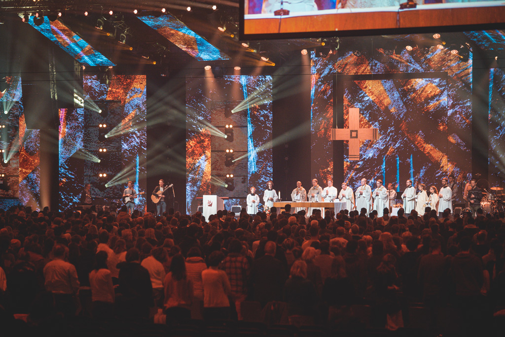 Die Herausforderung bestand laut Roni darin, mit dem gleichen Setup verschiedene Welten zu schaffen: „Wir haben Lobpreis-Konzerte, Hip-Hop-Acts, Vorträge, ein besinnliches kleines Konzert mit 2 Musikern sowie eine Eucharistiefeier.“