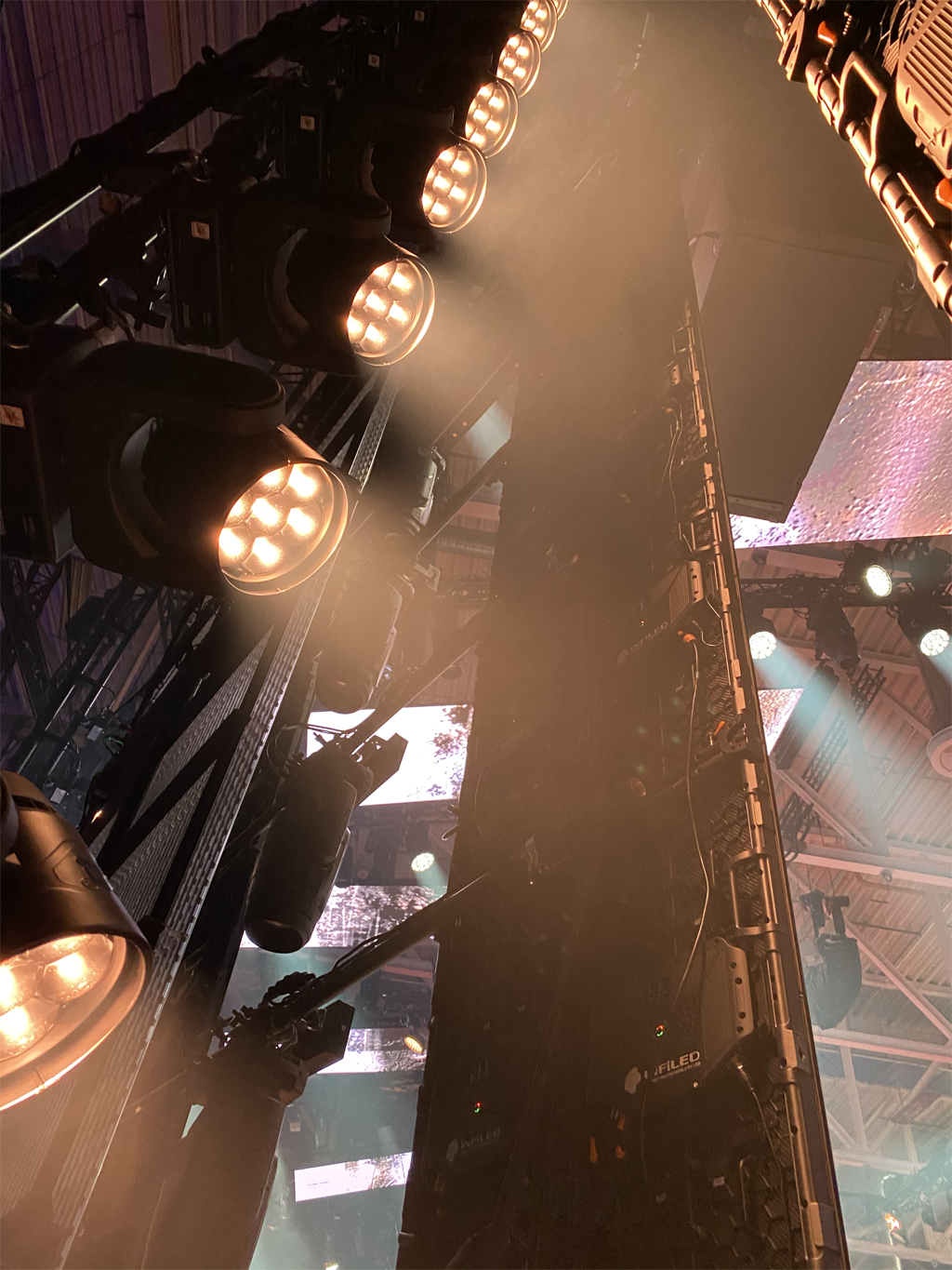 Die LED Beam 150 waren auf zwei Ebenen an der dreiteiligen Fronttraverse installiert. An diesen Positionen sorgten sie für schnelle und durchschneidende Beams. „Der LED Beam 150 ist einfach ein gutes Gerät: gute Größe, gutes Gewicht, sehr schön im weiten Zoom – und eng DIE Waffe. Zudem ist er sehr gut vertreten auf dem Markt“, verrät Roni.