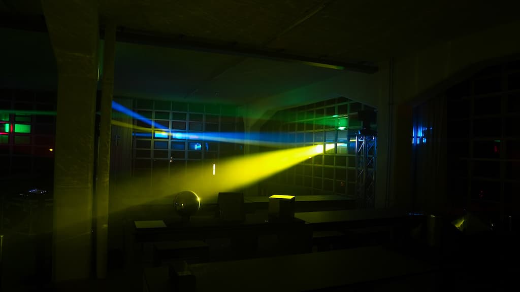 Als Henning Schletter das Angebot erhielt, eine Lichtkunst-Installation im ehemaligen Vorkurs-Raum des Bauhausgebäudes in Dessau zu entwickeln, habe er nicht lange überlegen müssen. Im Rahmen des Bauhausfestes 2021 entstand eine interaktive Installation, in der die sich vertikal öffnenden Fenster im Zusammenspiel mit Fusion Exo Beam Scheinwerfern von GLP ein Lichtspektakel entfachten.