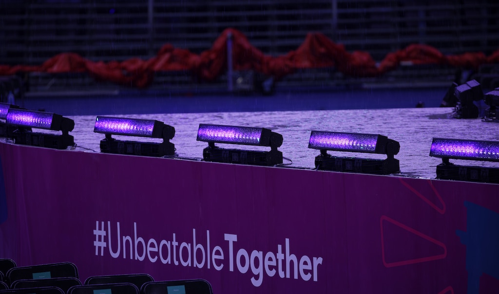 Für die Eröffnungsfeier spezifizierte Flo Erdmann insgesamt 120 GLP impression X5 Washlights, 138 impression X5 IP Bars sowie 80 Highlander Wash. Ohne Bühnenrigg konnten alle Scheinwerfer im Stadion nur gestellt werden.