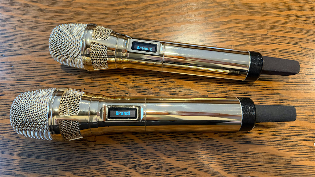 Der Monitor-Ingenieur von Brandi Carlile, Jerry Streeter (links), und der Front-of-House-Techniker Sean Quackenbush (rechts) mit dem eigens angefertigten goldenen Spectera-Handheld-Prototypen (Bild: Sennheiser)
