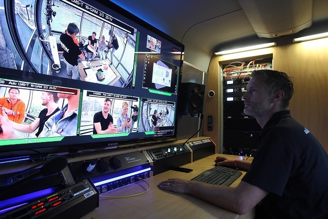 Für eine stabile Funkverbindung installierte HDwireless Antennen innerhalb der Seilbahn sowie auf dem 12 Meter hohen Antennenmast seiner mobilen Produktionseinheit RF1. Patrick Nußbaum, HDwireless Geschäftsführer, erklärt: „Alle Signale dieser Live-Sendung waren drahtlos. Unser Kunde musste sich somit zu hundert Prozent auf unsere Funkqualität verlassen können. Die einwandfreien Signale aus unserer Übertragungstechnik übernahm der Kunde via Glasfaserkabel am Übergabepunkt. Diese Produktion in der Gondel ist ein schönes Beispiel für die individuelle und erfolgreiche technische Umsetzung eines außergewöhnlichen Aufnahmekonzeptes.“