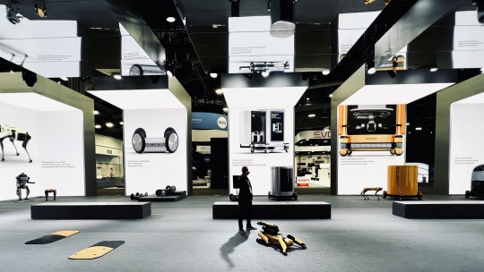 Neben den einzelnen Produktinseln bietet dort eine LED-beleuchtete Aktionsfläche im Zentrum des Standes ausreichend Fläche für regelmäßige Vorführungen der einzelnen Roboter – darunter auch das bekannte Modell Spot – und ihrer Funktionen.