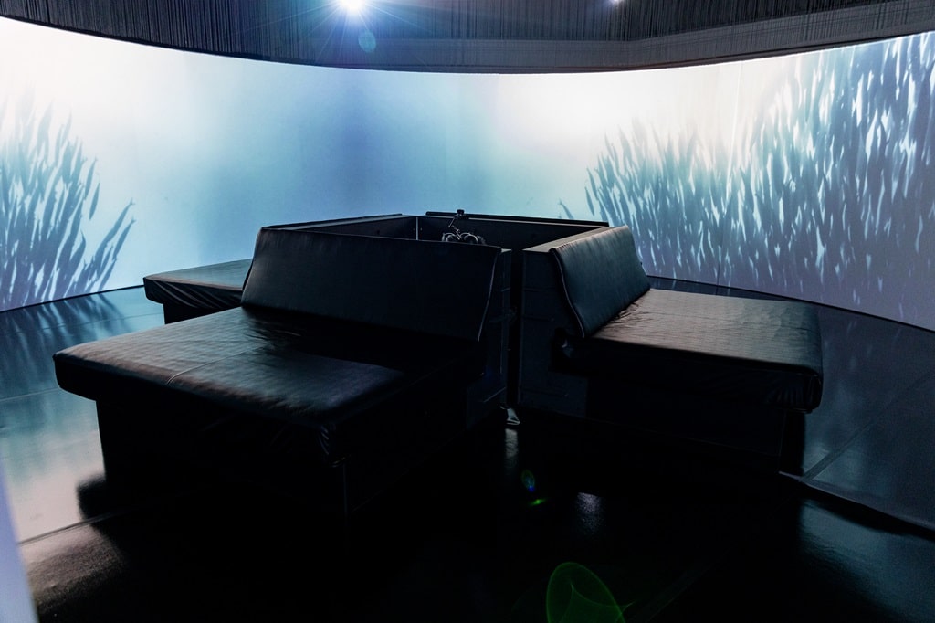 Für die Ausgabe von Bildmaterial auf zwei kreisförmigen Panoramen mit einem Durchmesser von jeweils 10 Metern und einer Höhe von 3 Metern richtete Screenberry 8 Panasonic PT-RZ970 Projektoren aus und nutzte dabei eine Kombination aus automatischer und manueller Kalibrierung. Um die 10-Meter-Kuppeldecke abzubilden, kalibrierte der Medienserver automatisch ein Array von 8 Panasonic PT-DZ780 Projektoren.