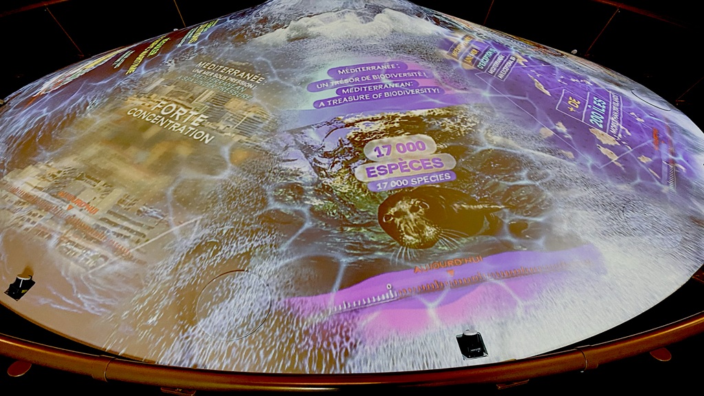 Die Ausstellung „Mediterranean 2050“ nimmt den Besucher noch bis Ende des Jahres mit auf eine raum-zeitliche Reise ins Herz des Mittelmeers ein. Sie zeigt dessen lebendiges Ökosystem und macht auf Umweltprobleme aufmerksam. Ein Highlight der Ausstellung ist eine Pottwalskulptur, die durch interaktive Projektionen zum Leben erweckt wird – gesteuert durch die Mediaserverlösung Modulo Kinetic von Modulo Pi und umgesetzt durch die technische Expertise von ID Scènes.