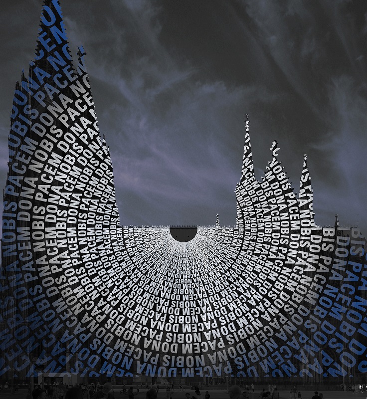 „’Dona nobis pacem’ auf dem Roncalliplatz bietet eine ganz neue Form des Gedenkens an“, zeigt sich Kurator Helmut M. Bien überzeugt. „Bei den Besuchern werden hoffentlich ‘Bilder im Kopf’ entstehen, die Hoffnung und auch Optimismus für die Zukunft ausstrahlen. Die Gäste können das Geschehen fotografieren und ihre Bilder an Freunde in aller Welt schicken, sie können Friedenslichter entzünden und mit anderen ins Gespräch kommen. Wortskulpturen in verschiedenen Sprachen dienen dabei als Sammelpunkte für die verschiedenen Sprachgruppen.“