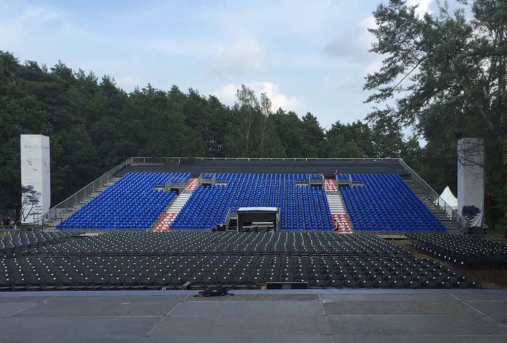 Neben der hochkarätigen Besetzung hatten sich die Veranstalter für dieses Jahr noch ein besonderes Konzept einfallen lassen: Zu der bisherigen ebenerdigen Reihenbestuhlung, kamen nun erstmals Tribünen zum Einsatz. Dafür lieferte Eventdienstleister eps sein flexibel einsetzbares Tribünensystem sowie den Klappstuhl Big Boy für den Bereich vor der Bühne.