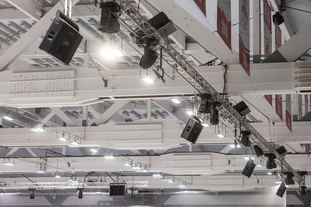 Mit einem neuen Point-Source-Soundsystem von KV2 Audio hat die Eisarena Salzburg die Sprachverständlichkeit bei Heimspielen des EC Red Bull Salzburg grundlegend verbessert. Die 3.400 Zuschauer fassende Eishalle litt zuvor unter einem über Jahre gewachsenen, uneinheitlichen Lautsprechersystem mit stark überlagernden Abstrahlwinkeln und massiven Reflexionen durch Glas-, Beton- und Eisflächen.