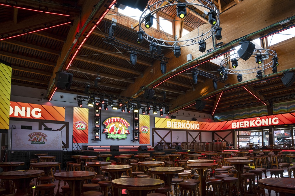 Eine umfassende Renovierung der 1.250 Quadratmeter großen Haupthalle des Bierkönigs, dem „Neuen Bereich“, die Ende 2024 begann, umfasste auch eine komplette Überarbeitung des Audiosystems. Der zentrale Veranstaltungsraum, der jeden Abend bis zu 2.000 Gäste beherbergt, litt lange Zeit unter einem Audiosystem, das dem Status des Veranstaltungsortes nicht gerecht wurde. Aufgrund der ungleichmäßigen Abdeckung und eines undefinierten Klangprofils, das die Darbietungen der Künstler beeinträchtigte, war es an der Zeit für eine komplette Umgestaltung.
