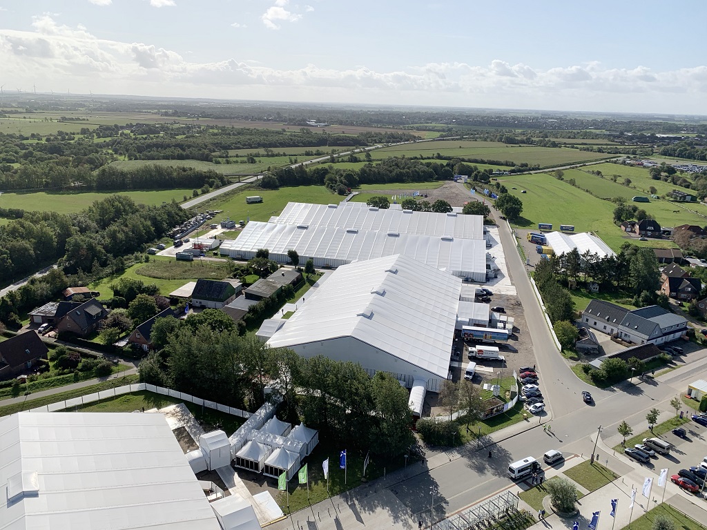 Losberger De Boer ist von Beginn an der zuverlässige Partner der Husum Wind, wenn es um die komplette Überdachung des Messegeländes geht. Die mobilen Messe- und Kongresshallen wurden aus vier Jumbohallen mit einer Grundfläche von insgesamt fast 20.000 m² errichtet. Vorgelagert wurde ein großzügig angelegter, 1.200 m² großer Eingangsbereich, für den eine Anova-Vista-Konstruktion mit den Maßen 15 x 80 m eingesetzt wurde.