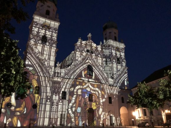Mitten im historischen Zentrum von Passau, Niederbayern, befindet sich der Dom St. Stephan. Die Bischofskirche des Bistums Passau steht auf der höchsten Erhebung der Altstadt und verfügt über den größten barocken Kircheninnenraum nördlich der Alpen. Die zweitürmige Barockfassade aus Haustein diente als Kulisse für die Videomapping-Aufführung „Symphonie aus Licht und Klang“. Mit dieser Multimedia-Show wurde das 350. Jubiläum des barocken Passauer Meisterwerks gefeiert – sie erzählt die Geschichte des Doms und der Dokumente und Innenarchitektur.