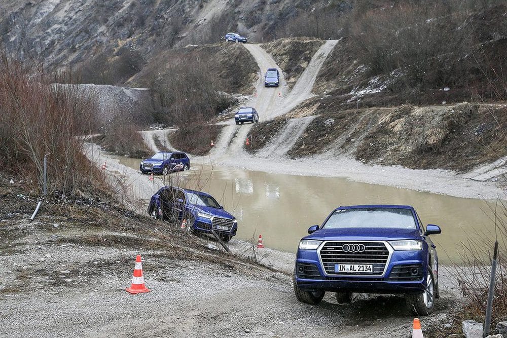 Beim Scenic Drive im Audi Q7 entlang der Alpen testeten die Gäste das Audi Quattro Fahrgefühl unter realen Winterbedingungen. Nächster Programmpunkt war der fahraktive Produkttest auf dem insgesamt über 100.000 Quadratmeter großen On- und Offroad-Parcours bei Saalfelden am Steinernen Meer. Hier zeigten die Q-Modelle, wie sie Extremsituationen meistern – und weil der Blick auf das imposante Bergpanorama und den Großglockner zu weiteren Neuigkeiten inspiriert, bekamen die Gäste exklusiv den neuen Audi Q2 präsentiert – mit Tape Art-Kunst von Marbet.