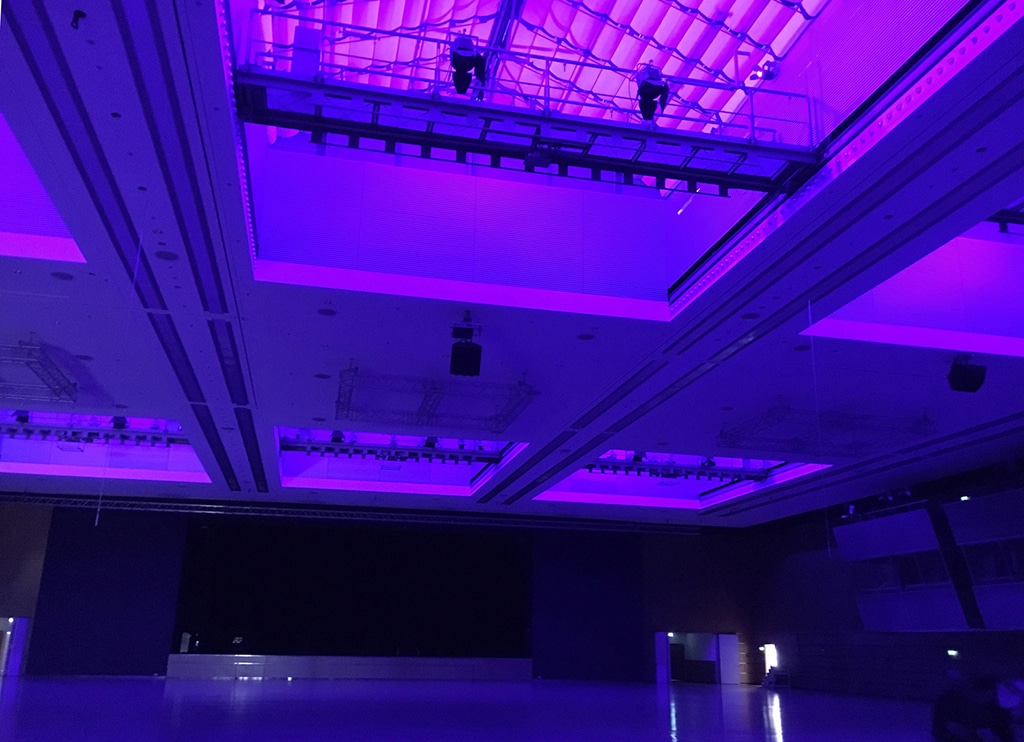 So wurden z.B. eine Trussbeleuchtung für das MOC mit 52 Displaycob FC Scheinwerfern, im ICM die Erneuerung der Beleuchtung der Deckensegel im Saal 14 und im Foyer mit 110 Stück Studiocob Plus FC oder die farbige Beleuchtung von runden Lichtvouten in der Halle B0 mit 84 Stück Lumipix LED-Bars in weißer Sonderlackierung realisiert.