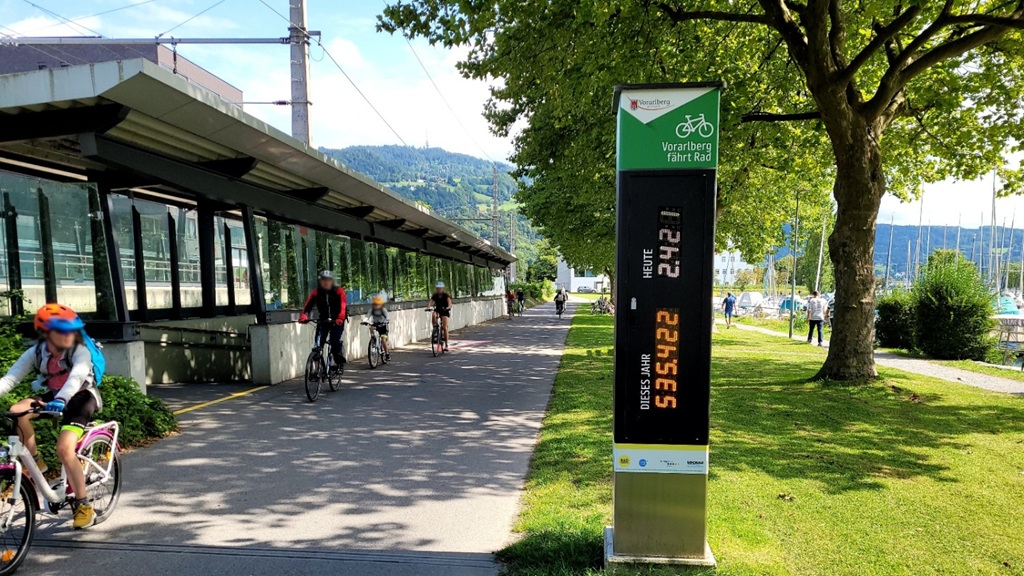 Die erhobenen Daten liefern nicht nur eine wertvolle Grundlage für die Verkehrsplanung, sondern machen den Radverkehr im Alltag auch unmittelbar sichtbar. Damit tragen die Anzeigen zur Motivation bei, häufiger auf das Fahrrad zu steigen – und zeigen zugleich, welchen Stellenwert das Radfahren in Vorarlberg bereits hat. Die Radzählstelle am Lochauer Hafen registrierte beispielsweise im Jahr 2022 nahezu 800.000 Durchfahrten am beliebten Abschnitt des Bodensee-Radweges.