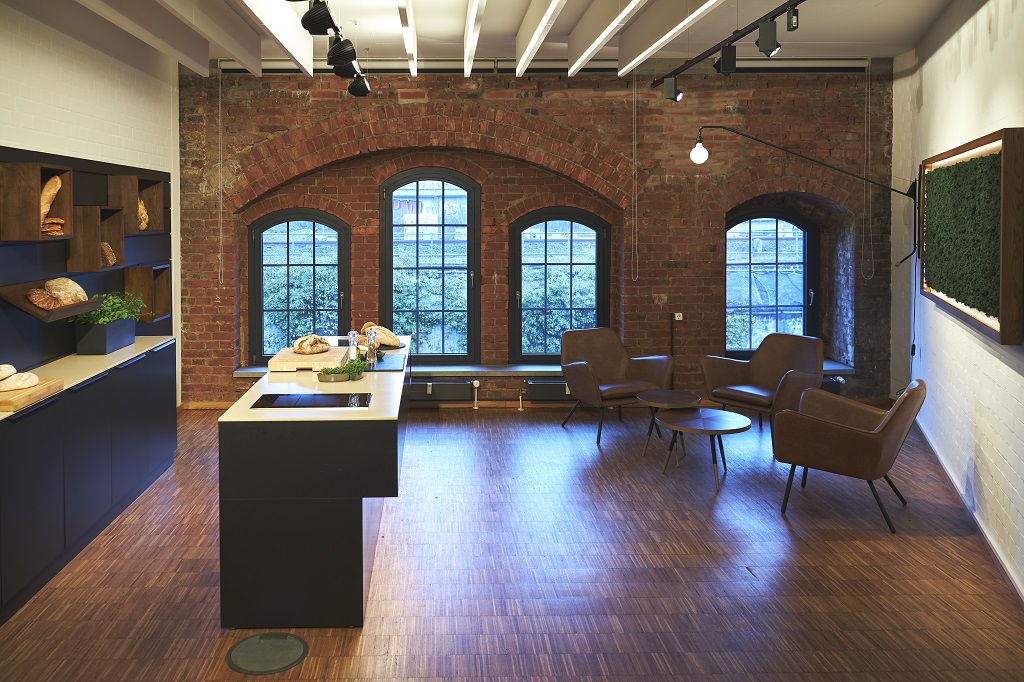 Das Studio ist dabei so aufgebaut, dass es auch im Alltag für Präsentationen und Meetings dient. In diesem Fall auch als Küche mit angeschlossenem Konferenzbereich, in dem sogar Großkunden eigene Schulungen durchführen können. Büro soll damit eine neue Bedeutung bekommen als Ort für Live-Meetings und gemeinsames Erleben der Marke.