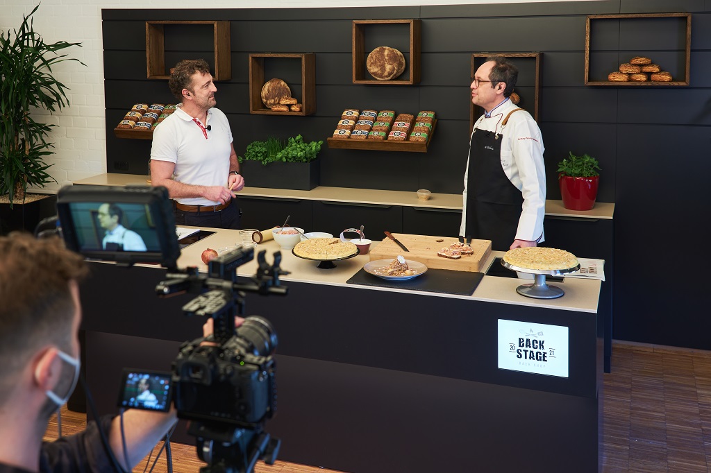 Die Hamburger Kreativagentur MIKS lieferte sowohl Design als auch Umsetzung zum neuen Filmstudio für Livestreams von der Back Shop Tiefkühl GmbH. Das Hamburger Unternehmen für TK-Backwaren will damit trotz Einschränkungen im Gespräch mit Kunden bleiben und auf der Bühne Tricks und Tipps sowie unkonventionelle Kreationen zeigen. TV-Koch Christian Kolb führt durch die Ideenwerkstatt. MIKS hat dafür den räumlichen Rahmen geschaffen, mit dem Marke und Botschaften nahbar und erlebbar werden sollen.