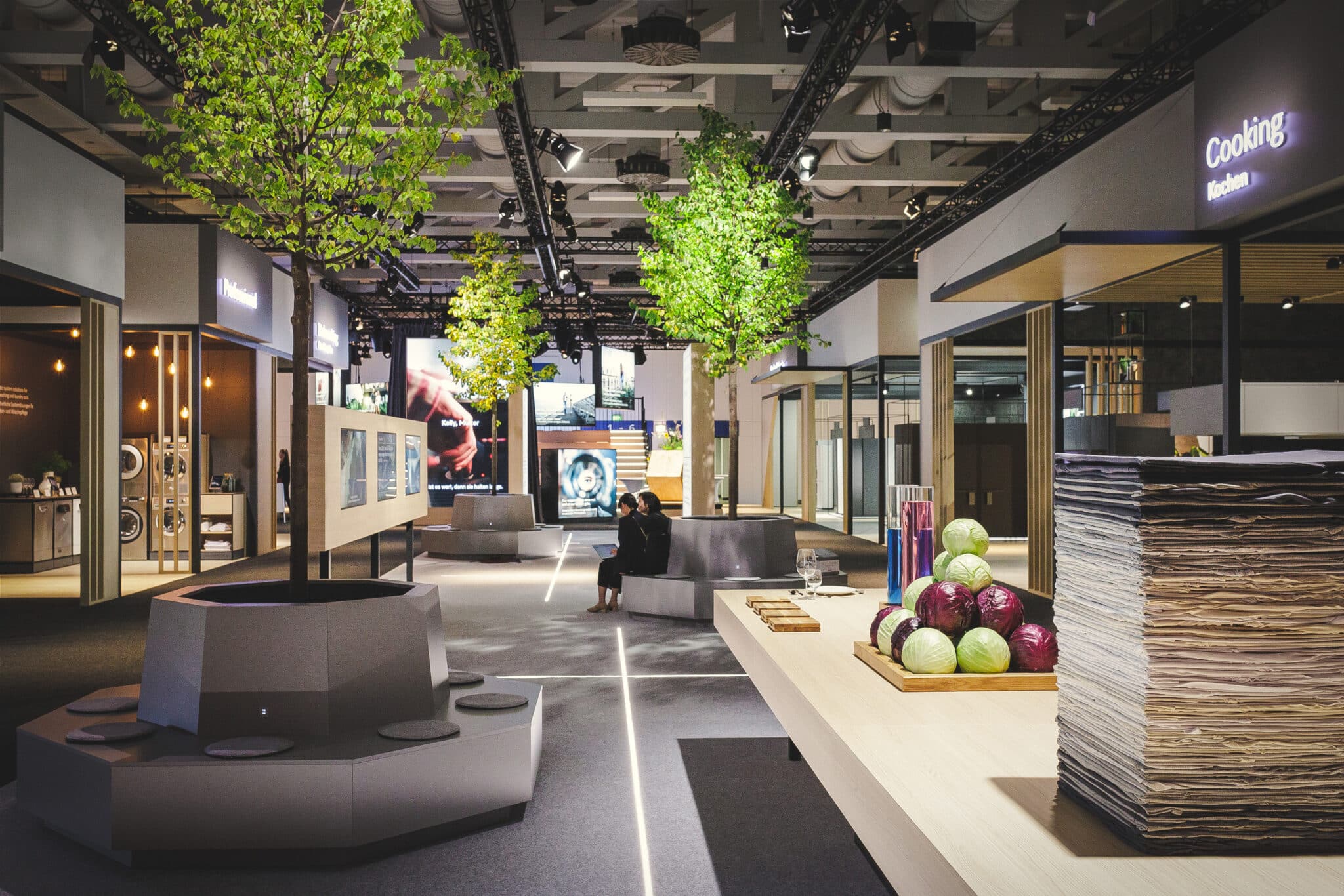 Um die strategischen Ziele und Visionen dem Publikum der IFA in Berlin zu präsentieren, entwarf und gestaltete Milla & Partner gemeinsam mit Rötzel Studio (Architektur) für Miele das Konzept eines städtebaulich anmutenden Raums, der die Leichtigkeit und den Charme dialogischer Kommunikation mit übergreifenden Themen von Miele verbinden sollte.
