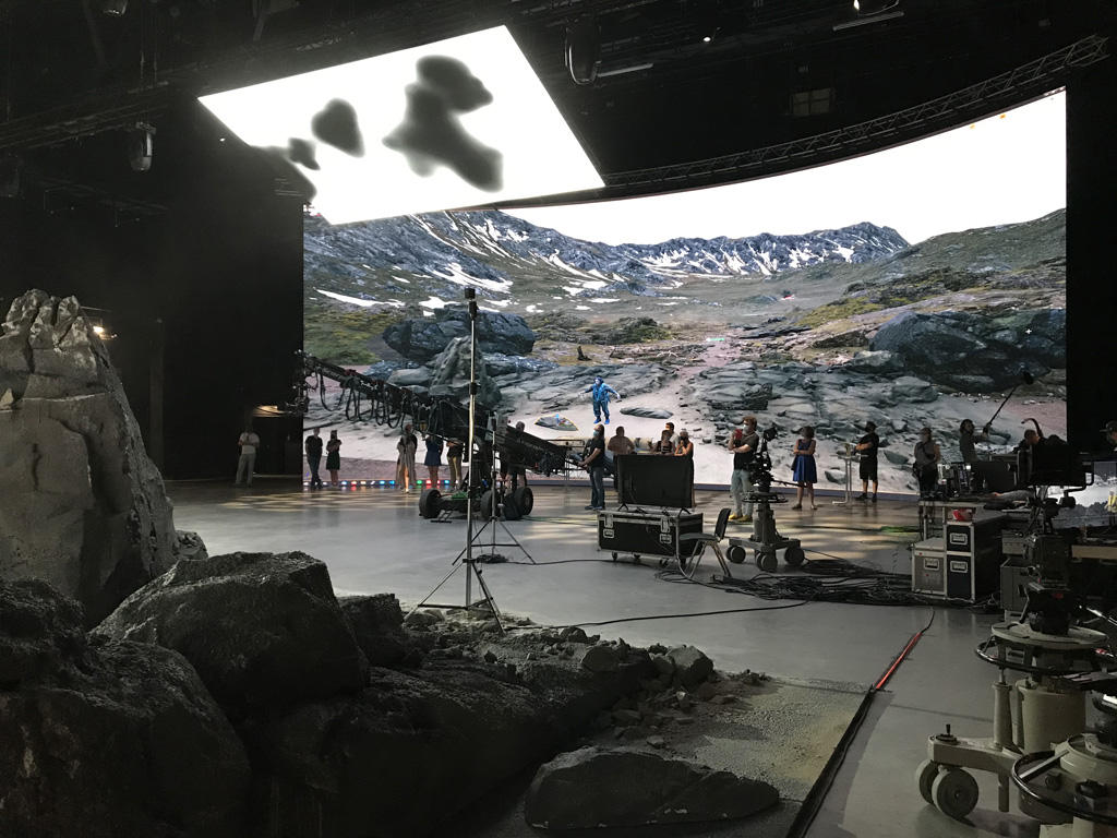 Für das Set in den MMC-Studios wurde für die Aufnahmen vor der Kamera eine 96 m² große Rückwand aus 416 ROE Visual Diamond DM2.6 LED-Panels verwendet, die einen feinen Pixelabstand erforderte. Um die größeren Gegenstände in eine virtuelle Welt zu bringen, wurde eine Leinwand von fast 22 × 10 Metern, bestehend aus 288 ROE Visual Carbon CB5 Panels, verwendet.