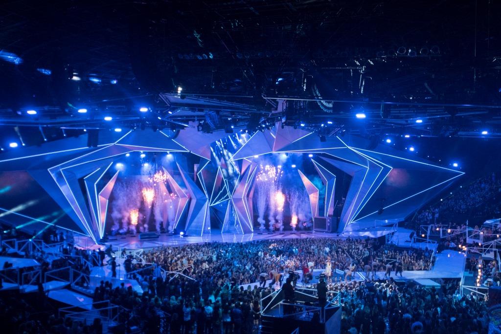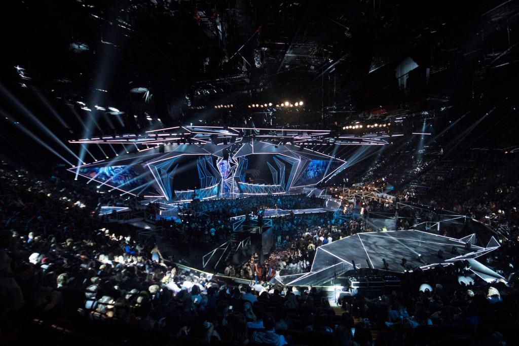 Ric und Bob hatten für dieses Jahr ein hohes Ziel vor Augen: „Wir wollten den Gästen etwas bieten, was sie so bisher noch nicht in dieser Location gesehen hatten.“ Insgesamt über vier Kilometer RGBW LED-Strips (als optischer “Kitt” zwischen den Bühnen), fast 200 der neuen GLP JDC1, 42 Impression X4 Bar 20, 12 Impression X4 Bar 10 und rund 50 GT-1 Hybriden kamen zum Einsatz. Die JDC1 Strobes waren dabei praktisch immer im Bild. „Wir haben einige davon in den Trussbögen rechts und links der Bühne und des Auditoriums installiert, weitere JDC1 waren direkt über den Bühnen angebracht und jede Menge davon waren zusätzlich im Hintergrund installiert“ erklärt Bob weiter. „Im Kamerabild geben diese Backlights fantastische Effekte ab, alles glitzert im Gegenlicht.“