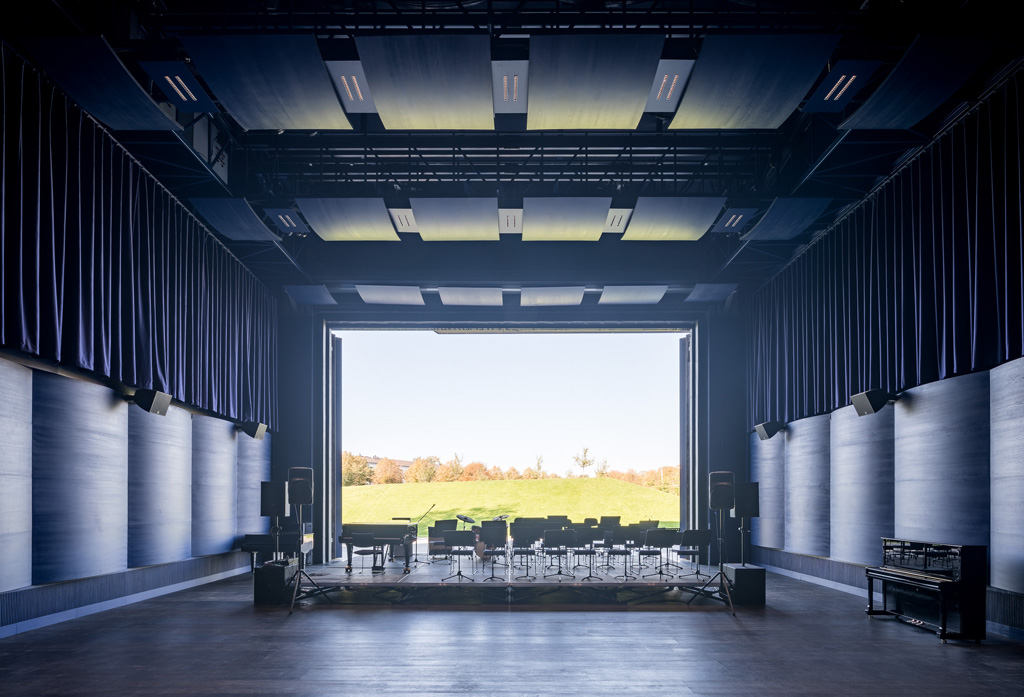 Für eine multifunktionale Nutzung des Konzertsaales sollen unter anderem 25 patentierte Akustikrollbanner G-Sorbersorgen – von Gerriets entwickelt, gefertigt und installiert.